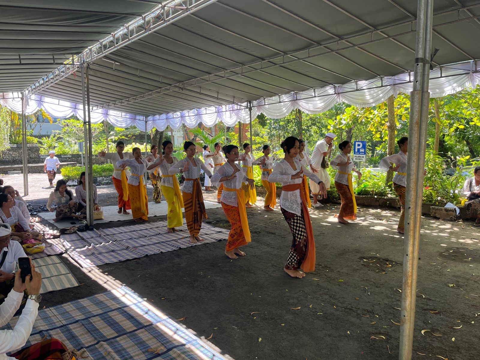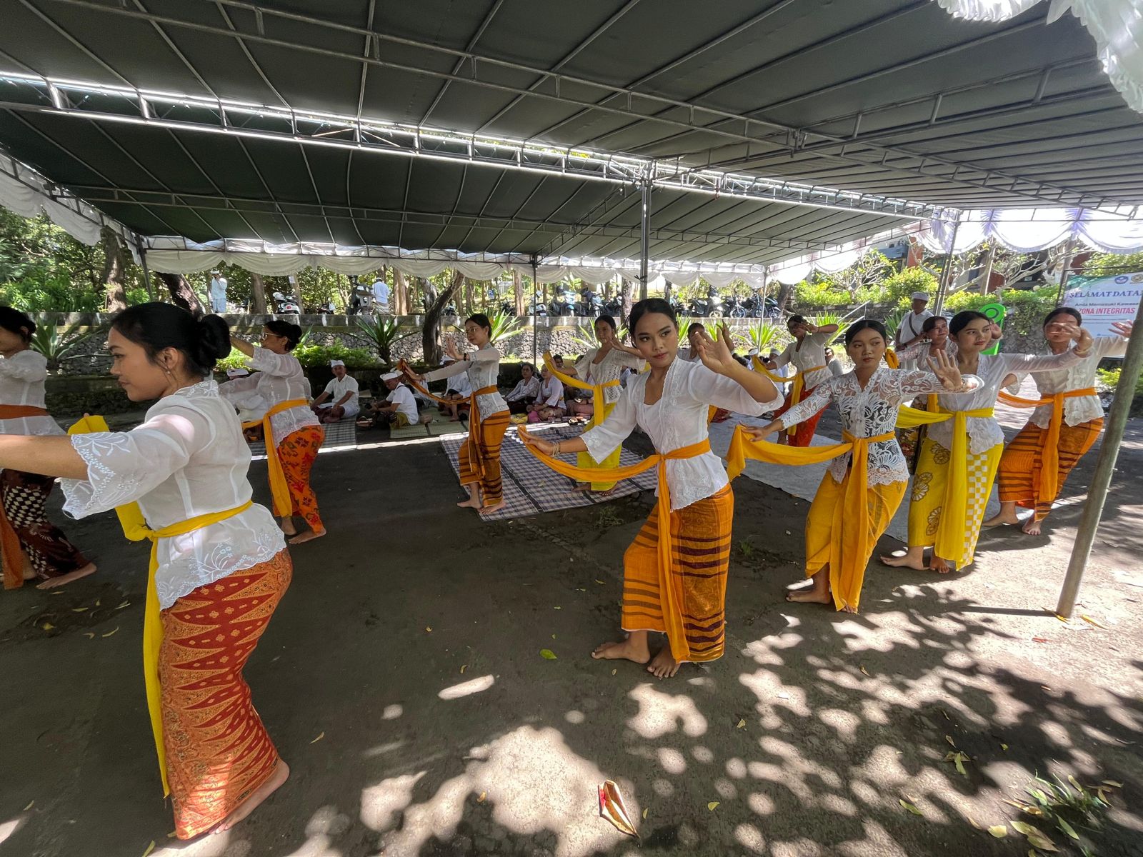 Suasana persembahyangan semakin semarak dengan penampilan Tari Rejang yang dipersembahkan oleh dosen, staf, dan mahasiswa. Tarian sakral yang ditampilkan sebagai bagian dari rangkaian upacara ini menjadi simbol ungkapan rasa syukur dan penghormatan. Partisipasi Program Studi Teknologi Pangan dalam pementasan Tari Rejang menjadi bentuk nyata kontribusi dalam menyukseskan kegiatan piodalan sekaligus memperkuat nuansa religius pada perayaan Purnama Kedasa.